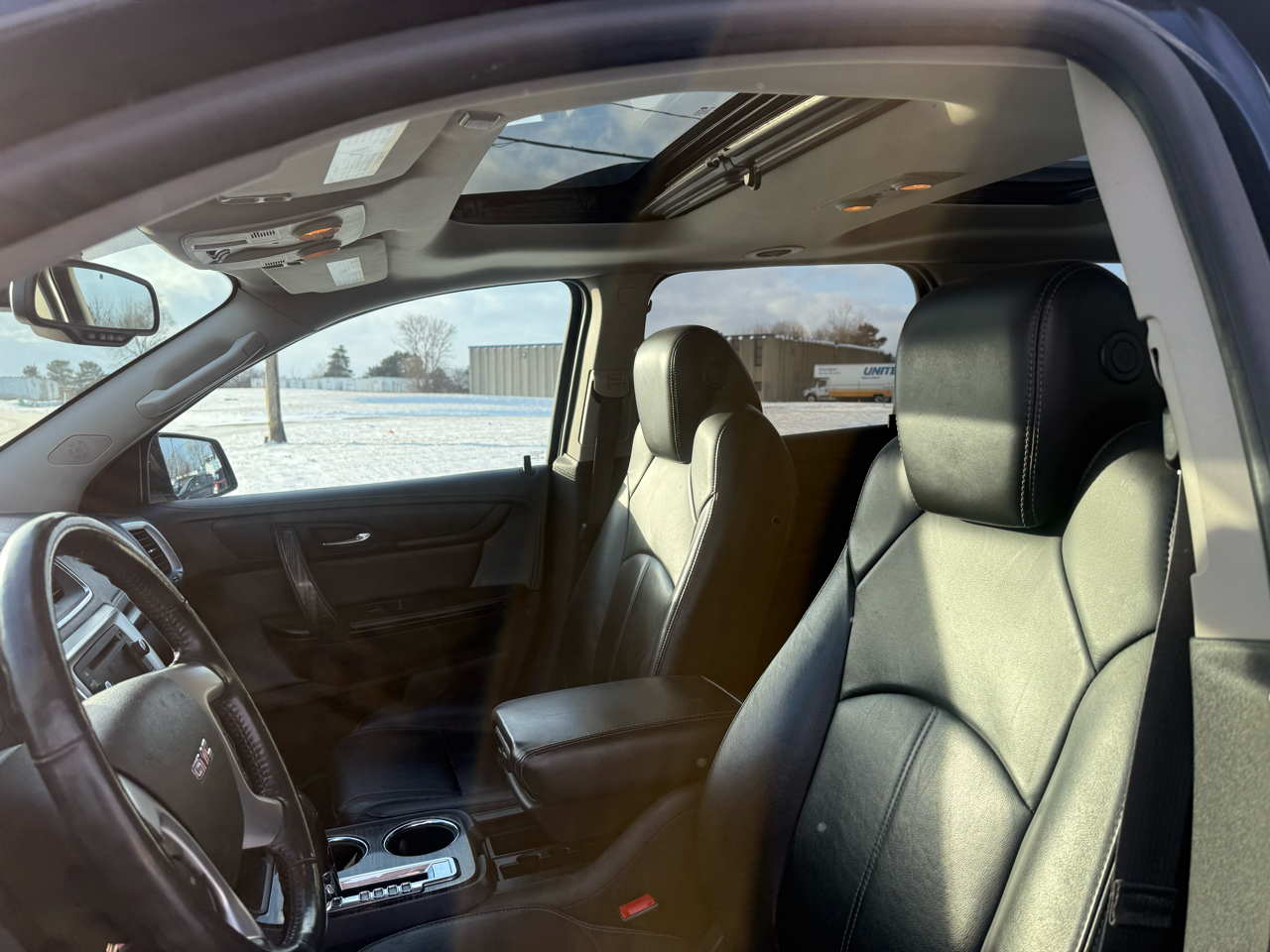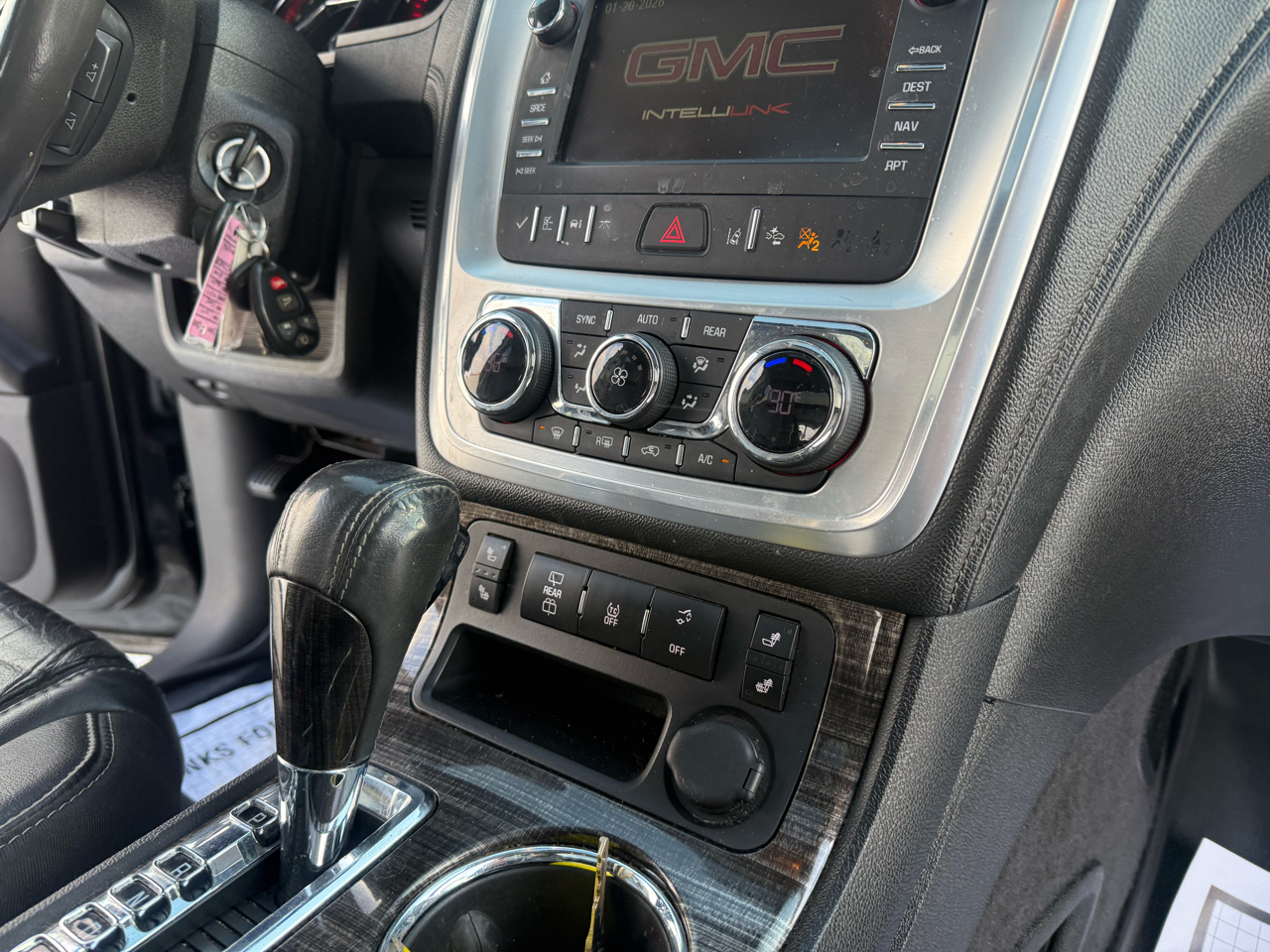 - Console, front center with 2 cup holders and storage